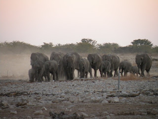 After picking the family up at the airport we stayed the first night just north of Windhoek on a nice guest farm. The next day we headed towards Etosha National Park. On the drive in we started spotting warthogs, zebras, springboks, all sorts of birds (the bird thing was mainly the two biology experts, Hans and Camilla), etc. But as soon as we entered the park things got even more interesting, as we saw an elephant almost immediately.